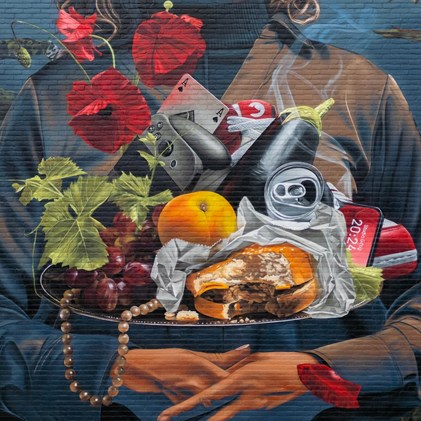 Samen met muureigenaar BrabantWonen zijn we langs de deuren gegaan om te polsen of bewoners openstonden voor het initiatief. Daarna, tijdens een bewonersavond, is er gesproken over de verleidingen van nu voor jong en oud. Van mobiele telefoons tot fastfood en van dure sneakers tot sieraden. En wat heeft Studio Giftig met deze input gedaan? Ze creëerden een kunstwerk waarin een jonge vrouw wegkijkt van een schaal vol verleidingen.